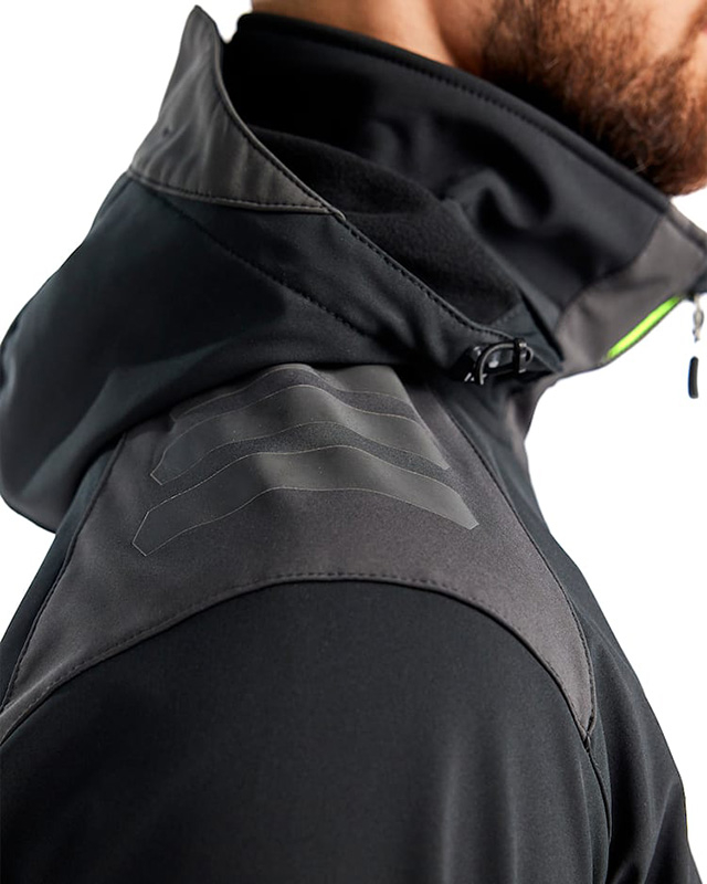 Flexible and versatile soft shell jacket with adjustable hood. Dark reflectors on the shoulders and back, plus robust zips The jacket is designed to provide maximum freedom of movement and is made of a stretchy, wind and waterproof fabric.