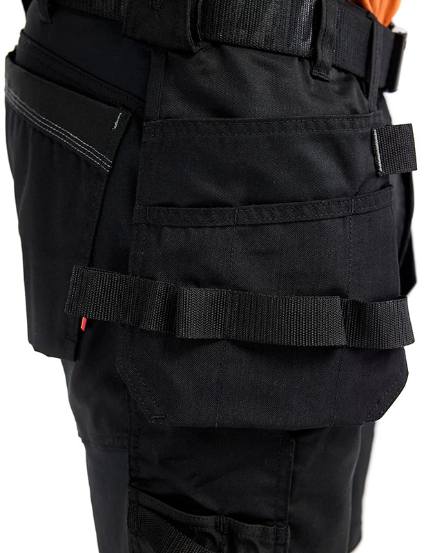 The shorts have tool pockets, practical pockets with reinforcement, ruler pocket, front pockets and loop for hammer holder on both the left and right sides.