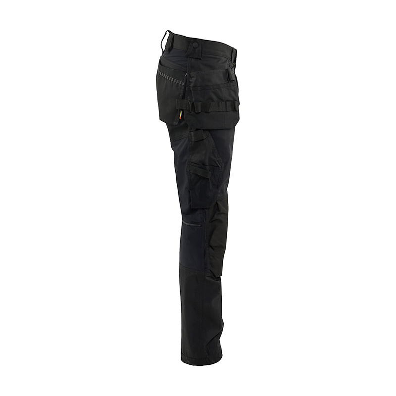 The trousers have fixed tool pockets, bottom-fed knee protector pockets with CORDURA®-stretch, practical pockets with reinforcement, ruler pocket, front pockets and loop for hammer holder on both the left and right sides.